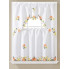 100% Polyester 3 piece embroidered window curtain set. Includes one valance approximately 60" x 36" and two tiers each 30" x 36". Assorted with blue, yellow, and pink with floral design.