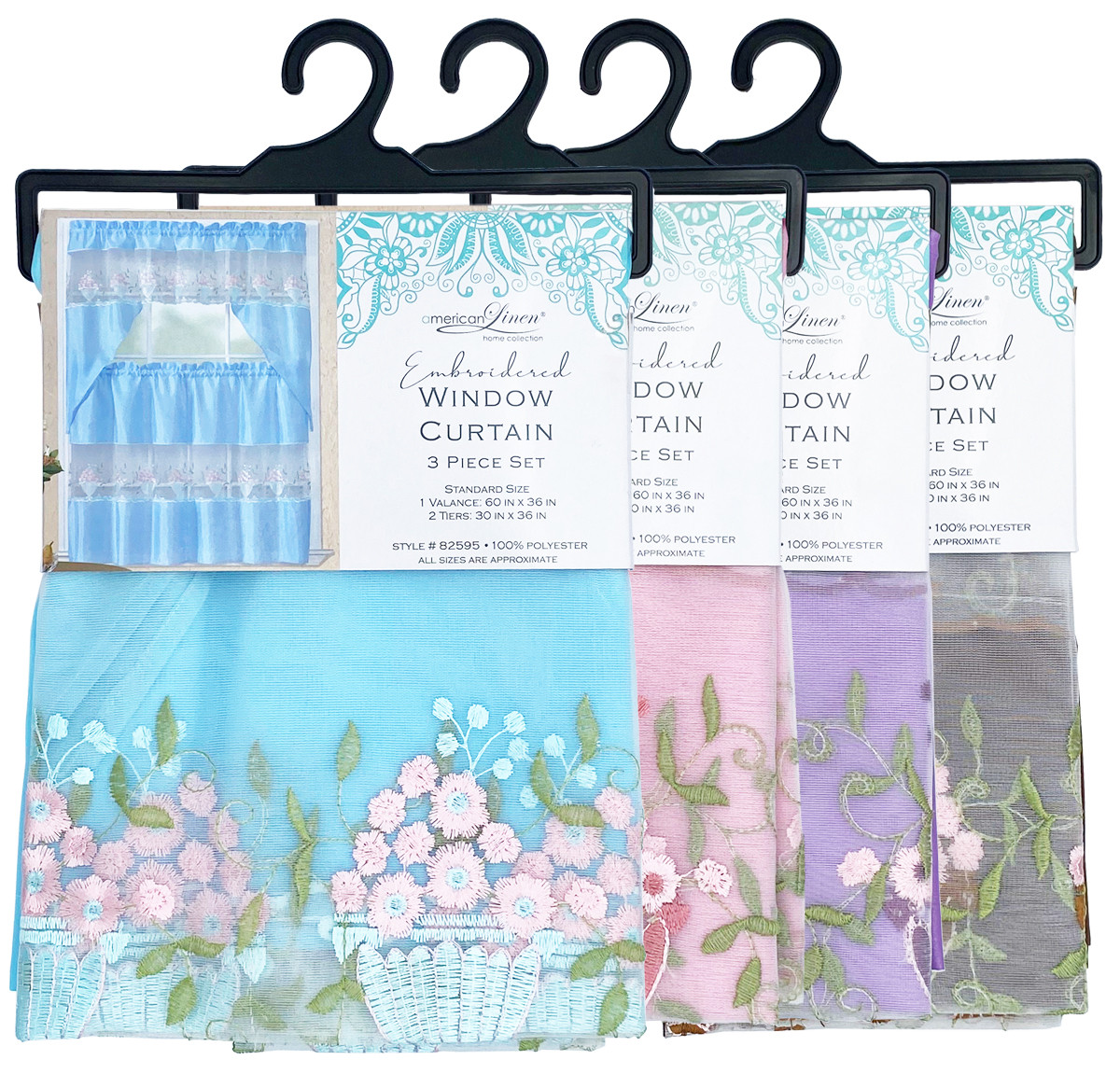 Embroidered Floral Window Curtain Set