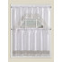 100% Polyester 3 piece lace window curtain set with sequin border. Includes one valance approximately 60" x 36" and two tiers each 30" x 36". Comes assorted in white and beige.