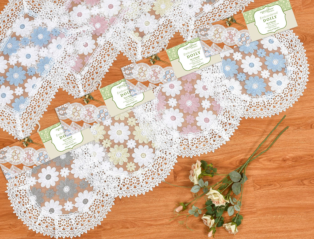 Embroidered Place Mat with Lace Border